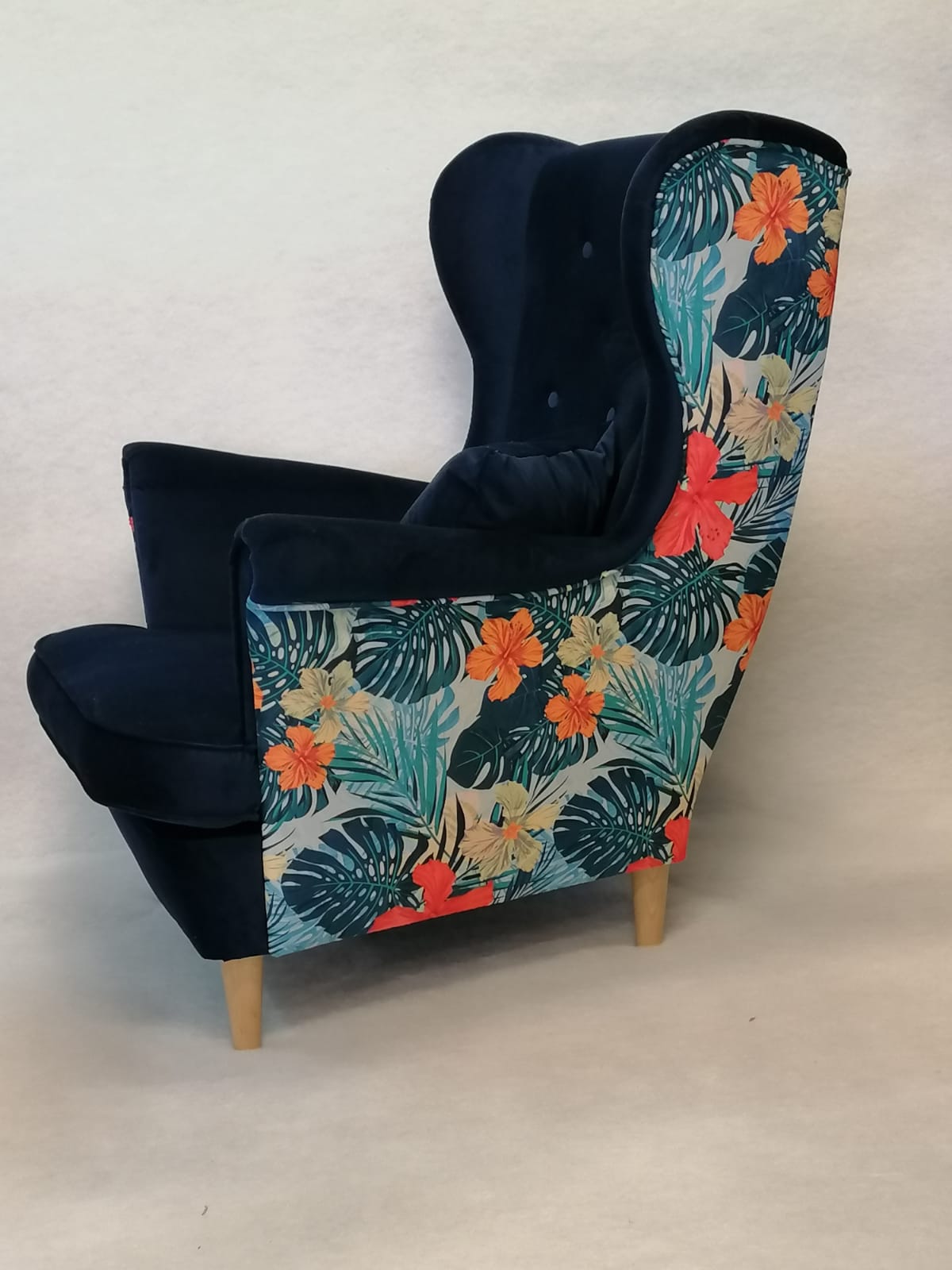 Fotel Skandynawski Uszak 8 + Podnóżek - Pół Na Pół Kwiaty/Tkanina Do Wyboru Dostawa 0Zł