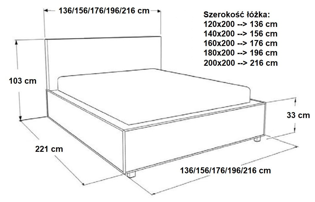 | Rozmiar łóżka: | 120x200 | 140x200 | 160x200 | 180x200 | 200x200 |